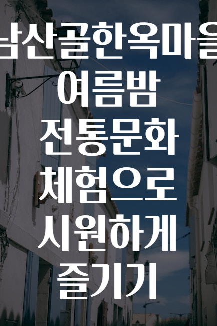 안녕하세요! 🤗 뜨거운 여름밤, 시원한 한옥마을에서 전통문화 체험으로 더운 기운을 날려버리고 싶지 않으세요? 🏡✨ 남산골한옥마을은 도심 속 자연과 전통이 어우러진 최고의 휴식처입니다. 이번 포스팅에서는 남산골한옥마을에서 즐길 수 있는 다양한 여름밤 전통문화 체험🎉과 함께, 시원하게 여름을 보내는 꿀팁📝을 가득 담아드릴게요! 준비되셨나요? 🥰☀️