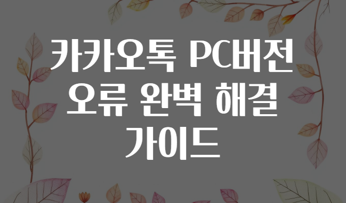 카카오톡 PC버전 오류 완벽 해결 가이드 💻✨