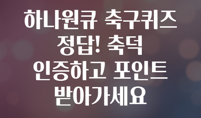 "축구 알못도 재밌게 참여할 수 있을까?" 🤔 이런 고민하는 분 많으시죠? 축구는 한국에서 가장 사랑받는 스포츠 중 하나지만, 막상 축덕(축구 덕후) 인증 퀴즈가 나오면 긴장부터 하는 분도 많습니다. 그래서 준비했습니다! 오늘은 하나원큐 축구퀴즈 정답과 함께 축구 지식을 UP! 시키면서 포인트도 챙길 수 있는 꿀팁을 자세히 알려드릴게요! 🏅
