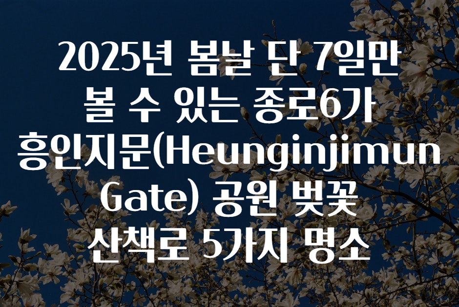 봄철 아름다운 벚꽃 명소는 많지만, 2025년 봄에 단 7일간만 만개하는 종로6가 흥인지문(Heunginjimun Gate) 공원의 벚꽃 산책로를 아시나요? 🏯🌸 서울의 역사가 숨 쉬는 이곳에서, 매년 봄마다 펼쳐지는 환상적인 벚꽃 풍경은 짧지만 강렬한 감동을 선사합니다. 봄꽃축제도 좋지만, 오늘은 조금 덜 알려졌지만 절대 놓칠 수 없는 ‘흥인지문 벚꽃 산책로’ 5가지 명소 집중 탐방과 실속 정보, 그리고 방문 팁까지 모두 알려드릴게요! 💡✨